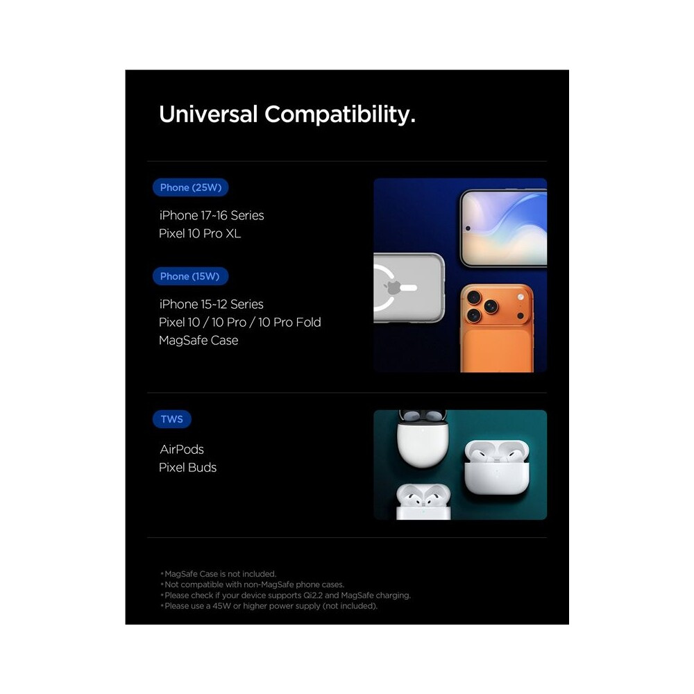 Spigen Essential MagSafe 2in1+C Qi2/MagSafe nabíječka (25W) černá
