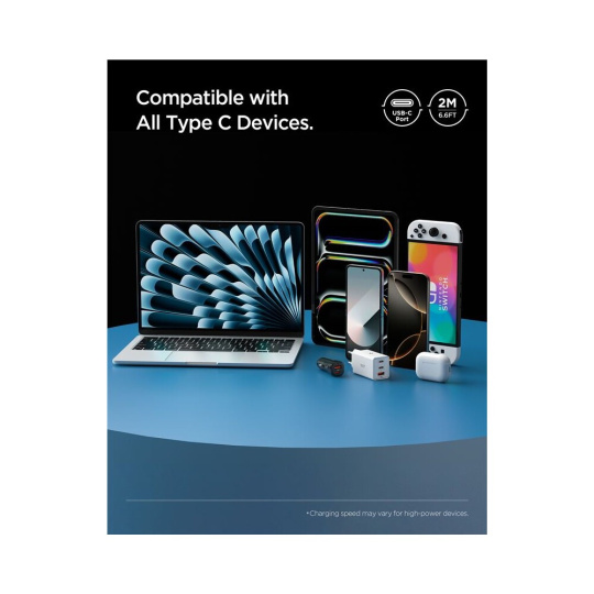 Spigen Essential USB-C/USB-C napájecí kabel 60W 2m bílý