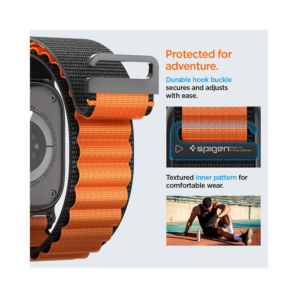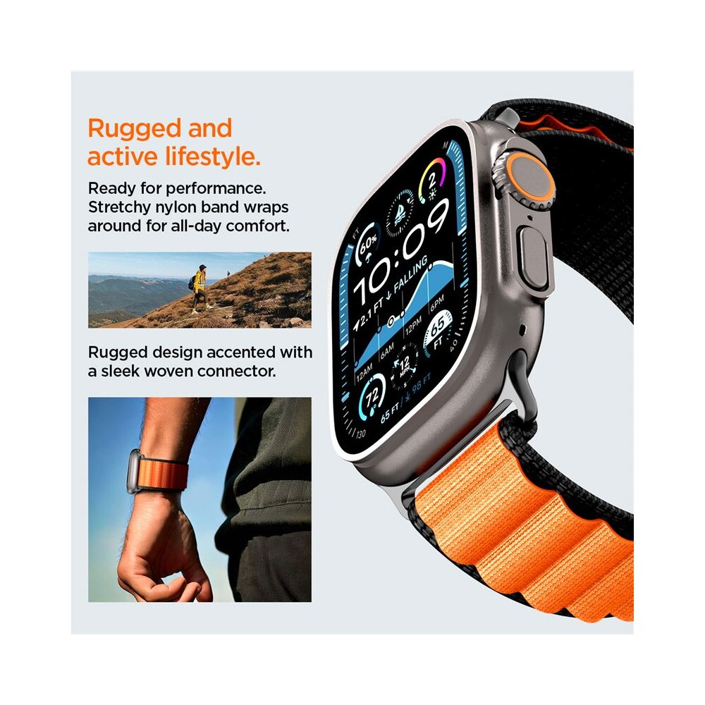 Spigen Fabric Band (hook) řemínek Apple Watch 49/46/45/44mm černý/oranžový