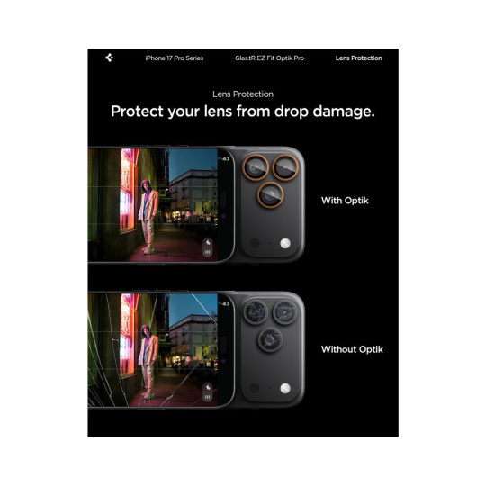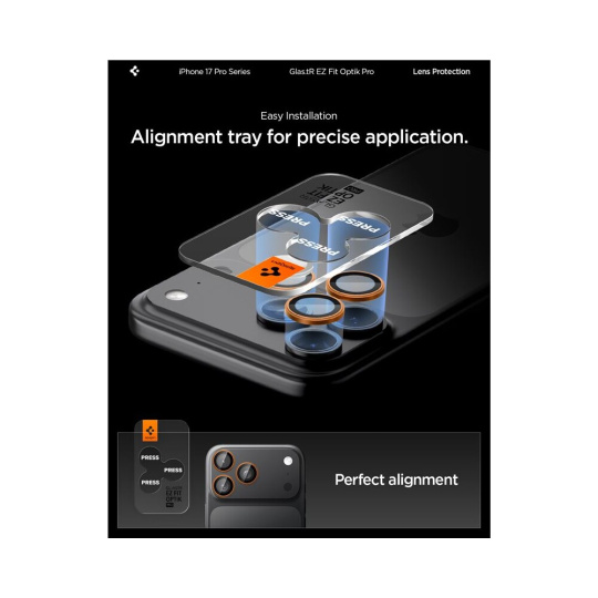 Spigen Glass tR EZ Fit Optik Pro skla iPhone 17-14 Pro/17-14 Pro Max orange (2 ks)