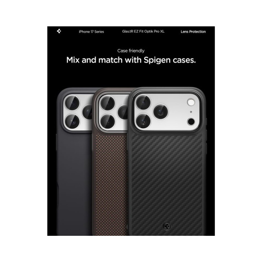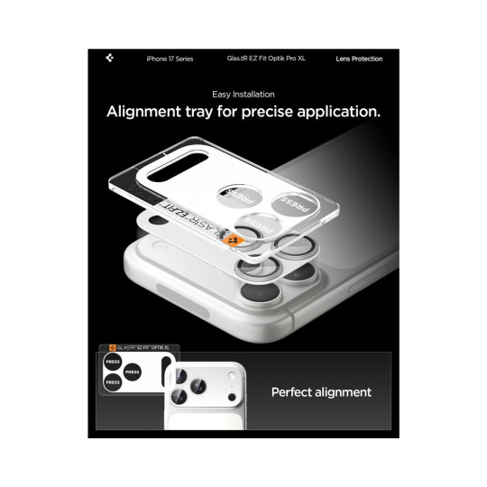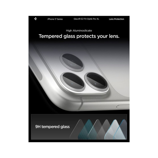 Spigen Glass tR EZ Fit Optik Pro XL sklo na fotoaparát iPhone 17 Pro Max stříbrné
