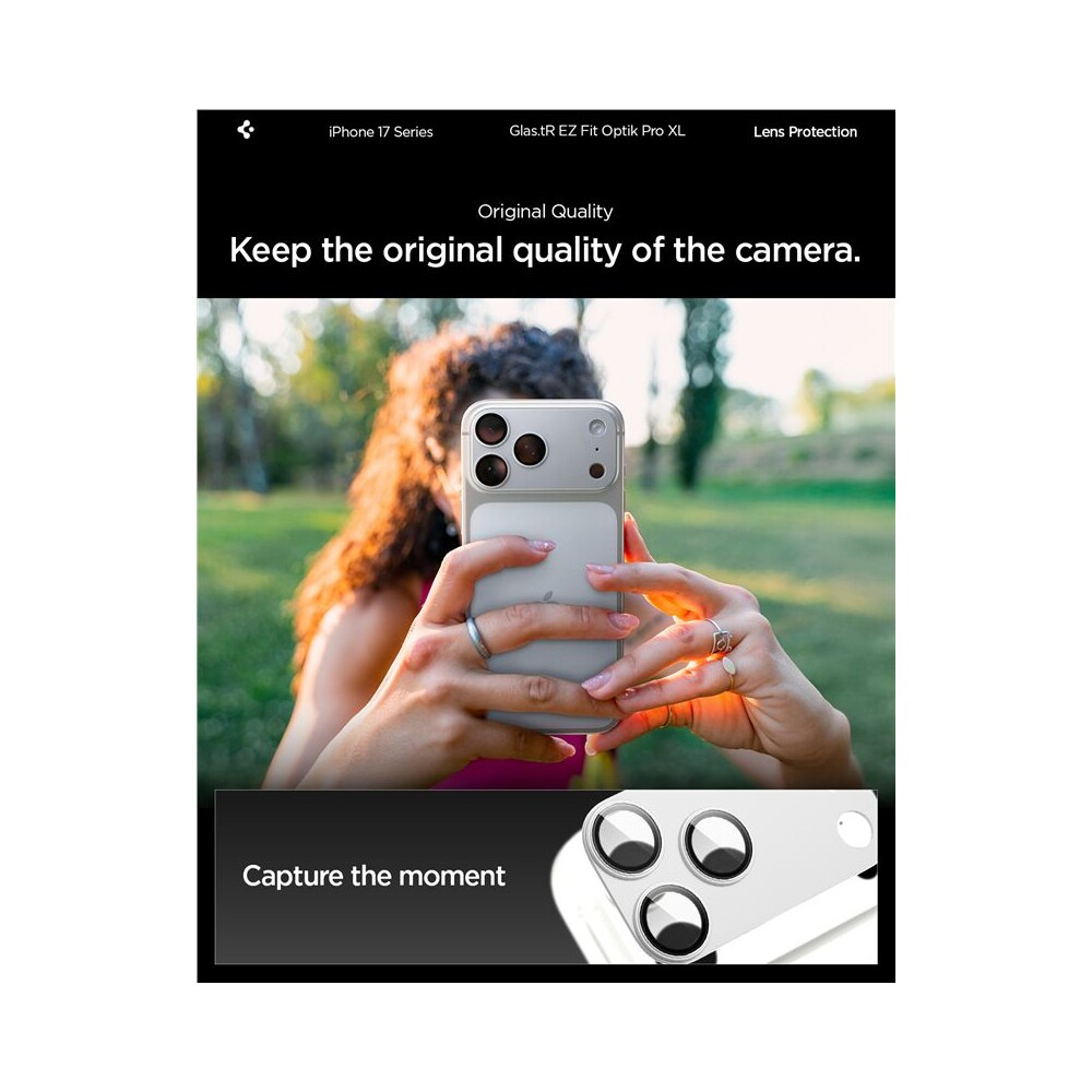 Spigen Glass tR EZ Fit Optik Pro XL sklo na fotoaparát iPhone 17 Pro Max stříbrné