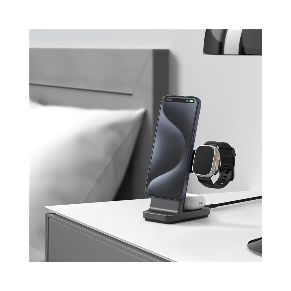 Spigen OneTap Pro 3 MagSafe/Qi2 nabíjecí stojan 3v1 tmavě šedý