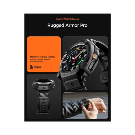 Spigen Rugged Armor Pro kryt s řemínkem Galaxy Watch8 Classic (46mm) matně černý