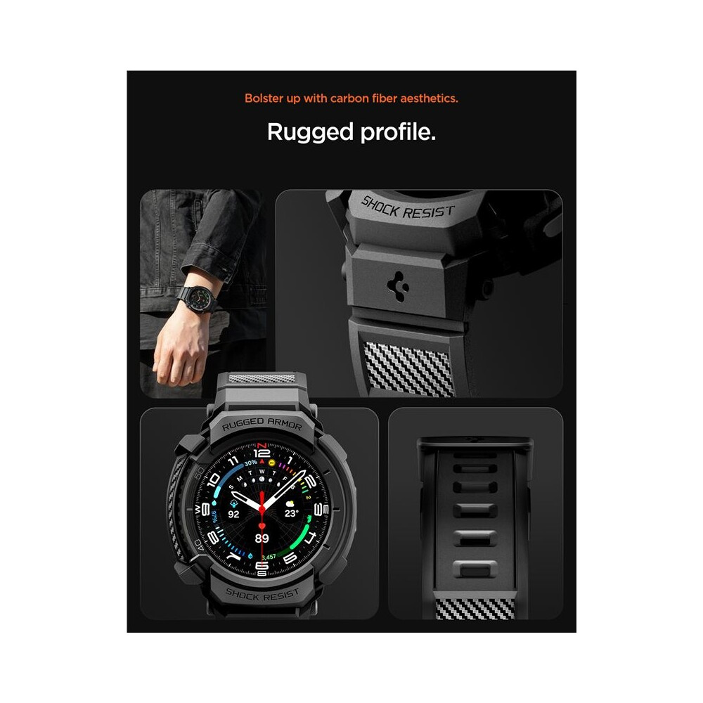 Spigen Rugged Armor Pro kryt s řemínkem Galaxy Watch8 Classic (46mm) matně černý