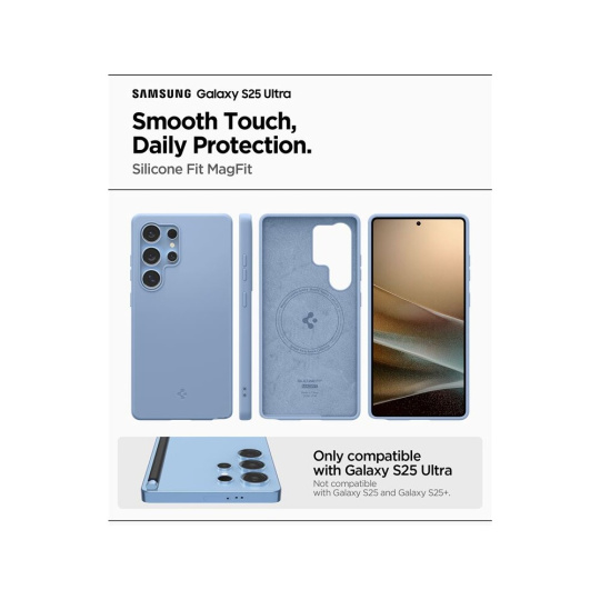 Spigen Silicone Fit MagSafe kryt Samsung Galaxy S25 Ultra safírově modrý