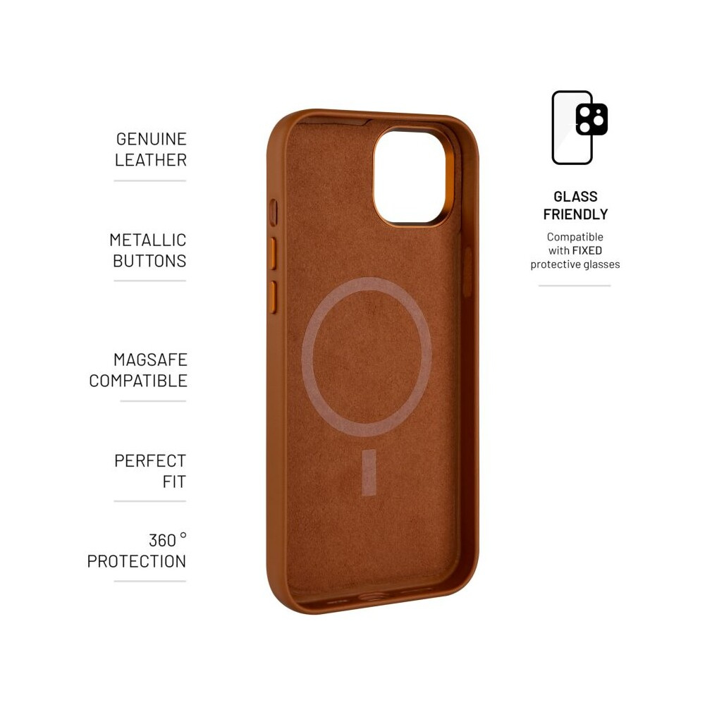 FIXED MagLeather kožený kryt s MagSafe Apple iPhone 14 hnědý