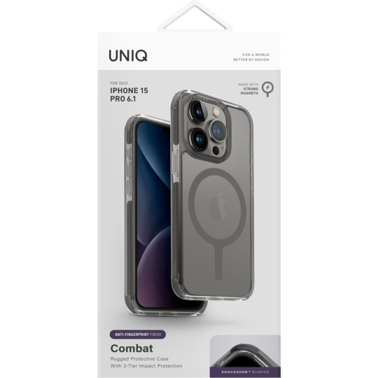 UNIQ Combat MagClick ochranný kryt iPhone 15 Pro Frost Grey (šedý)