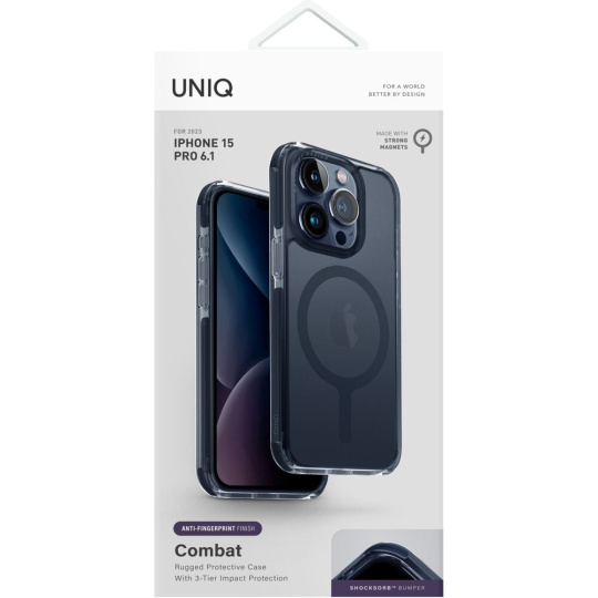 UNIQ Combat MagClick ochranný kryt iPhone 15 Pro Smoke Blue (modrý)