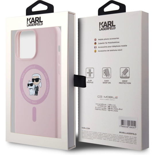Karl Lagerfeld Liquid Silicone Karl and Choupette Magsafe zadní kryt iPhone 15 Pro Max růžový