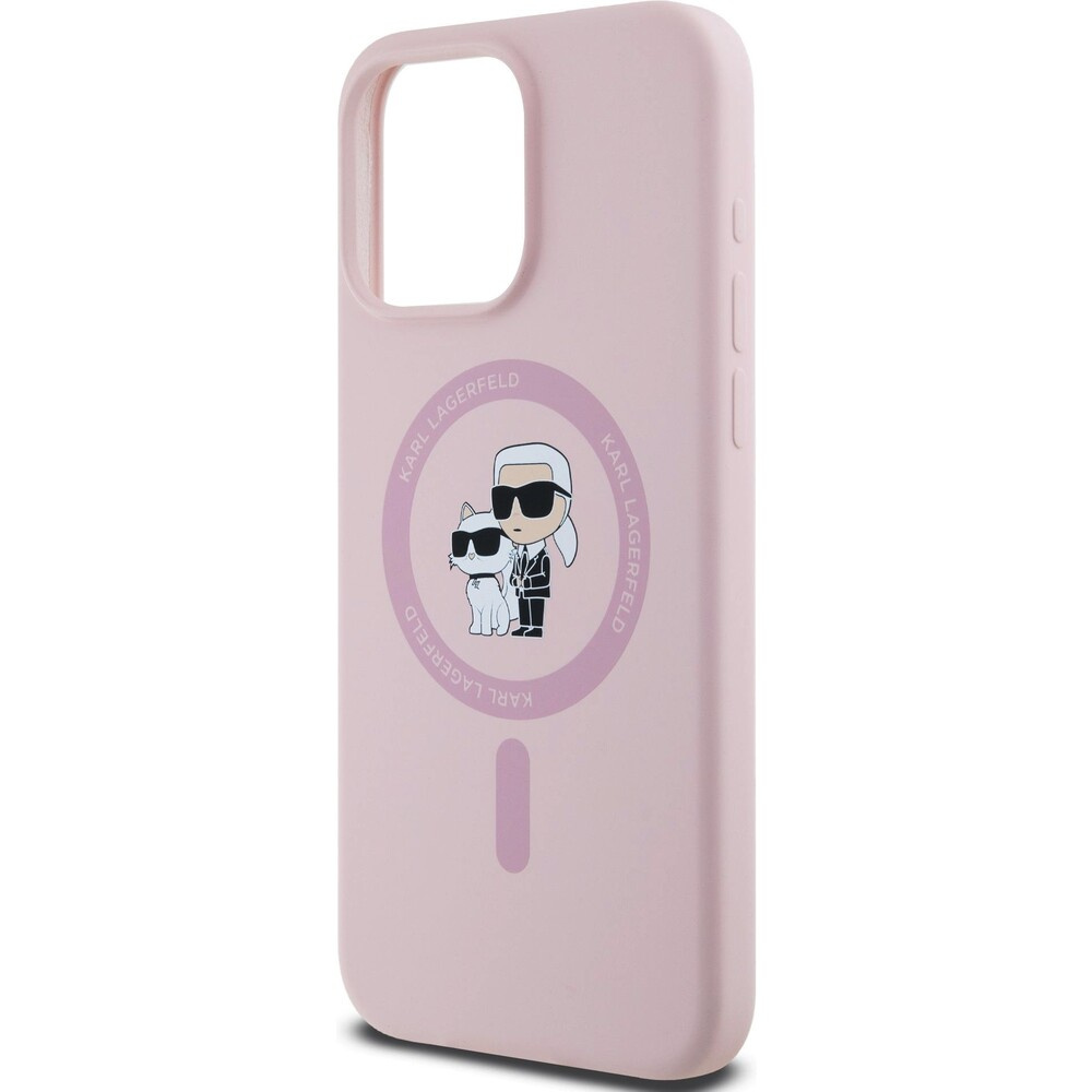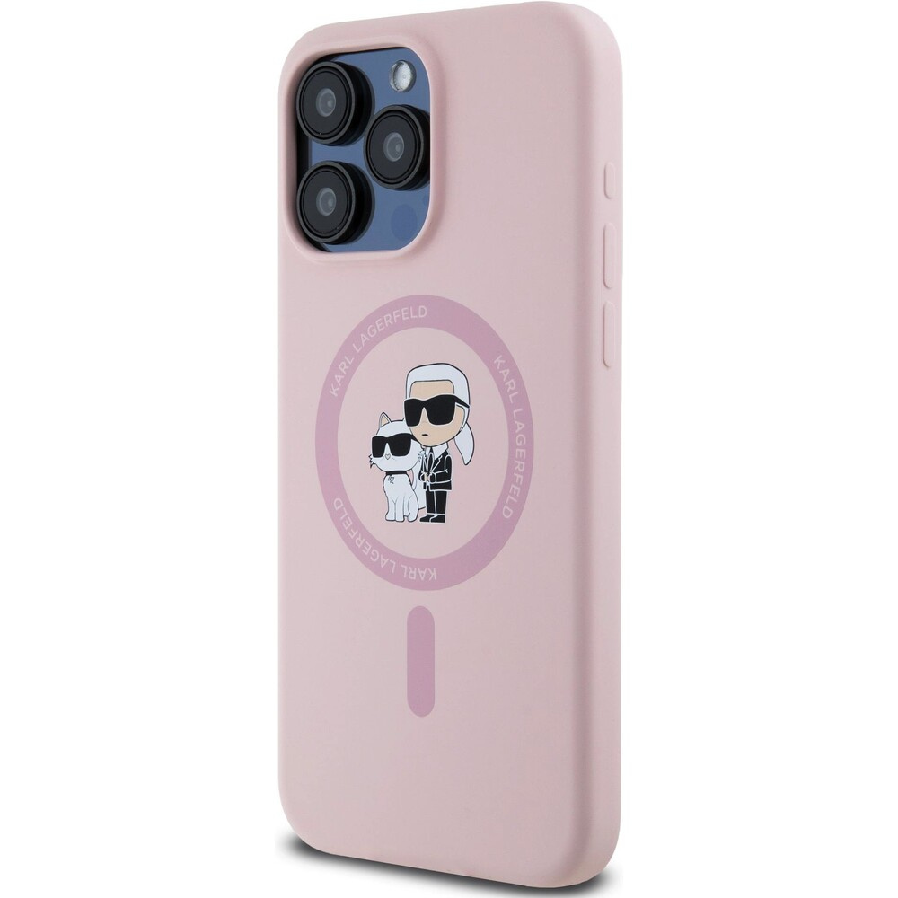 Karl Lagerfeld Liquid Silicone Karl and Choupette Magsafe zadní kryt iPhone 15 Pro Max růžový