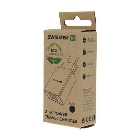 SWISSTEN Smart IC síťový adaptér 2x USB 2,1A černý (eco- balení)