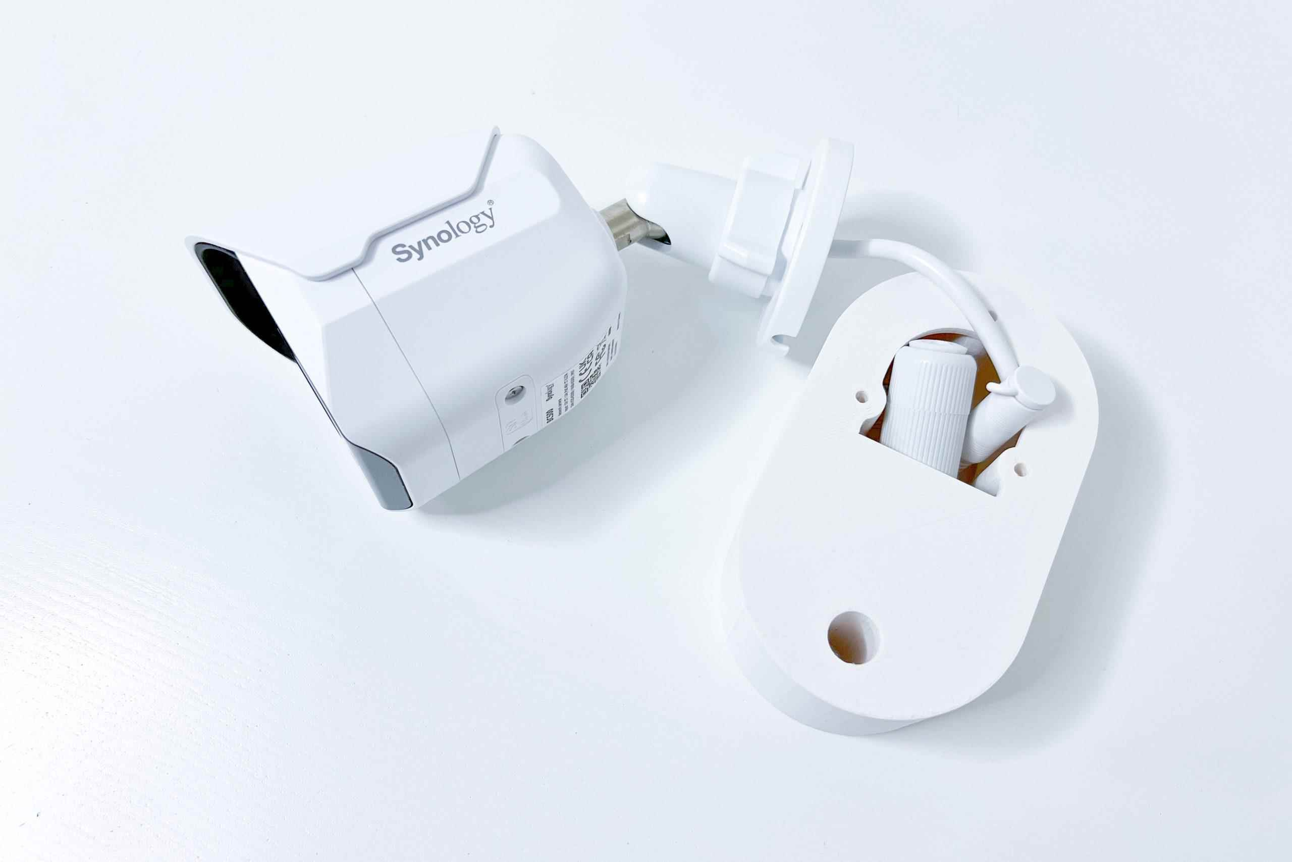 Plastový držák je určený pro uchycení kamery Synology BC500 na stěnu nebo strop a to pomocí tří šroubů. Držák je vyroben z PETG materiálu na 3D tiskárně, má bílou barvu.