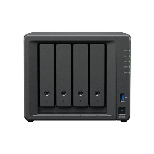 | Obsah balení | • 1 x hlavní jednotka DP340 • 4 x 3,5" SATA HDD • 1 x adaptér • 1 x napájecí kabel • 2 x síťový kabel RJ-45 • 1 x balíček s příslušenstvím • 1 x stručná instalační příručka |