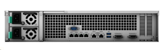 12 šachtové zařízení RS3621xs+ nabízí výkon s hodnotami IOPS při náhodném čtení 4K přes 238 000 a sekvenční propustnost při čtení 5 819 MB/s1 – skutečně výkonný podnikový nástroj. Kompletní záloha zdroje energie, 8 jádrový procesor, paměť ECC, pokročilá technologie pořizování snímků a automatické opravy souborů zajišťují, že zařízení RS3621xs+ dokáže být spolehlivým základem každé firmy pracující s daty.