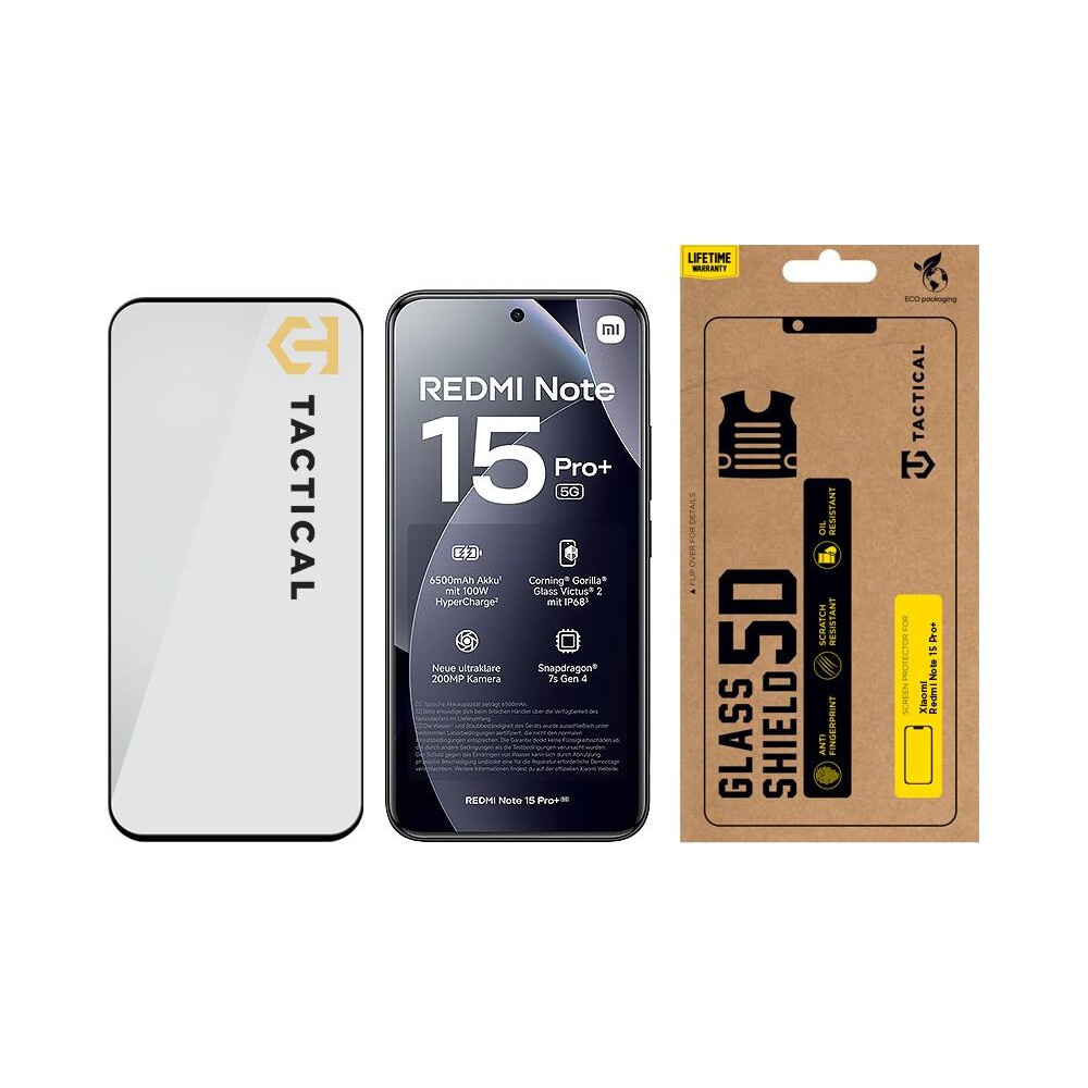 Tactical Glass Shield 5D sklo pro Xiaomi Redmi Note 15 Pro+ 4G/5G černé