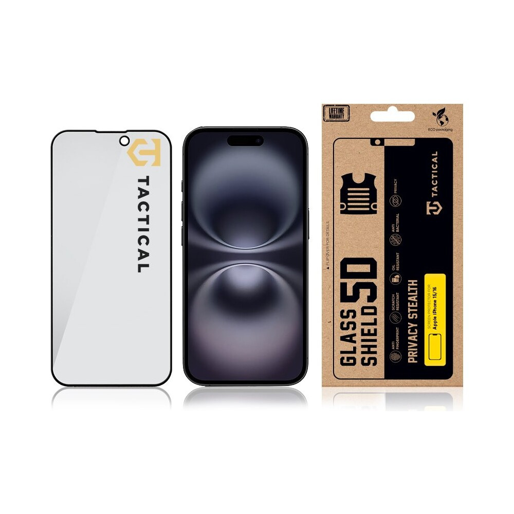 Tactical Glass Shield Privacy Stealth 5D sklo Apple iPhone 15/16 černé