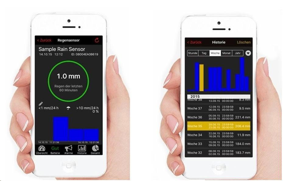 umožňuje pomocí mobilní aplikace okamžité sledování srážek. Aplikace Vás upozorní na překročení předem nastavené hodnoty maximálních srážek pomocí zprávy na vašem mobilním zařízení.