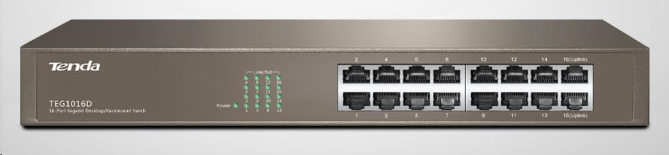 Tenda TEG1016D 16-port Gigabit Ethernet Switch, 10/100/1000 Mbps, fanless, rackmount