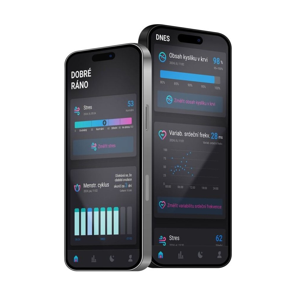 Měření SpO2, Měření tepu, Krokoměr, Kontinuální měření tepu