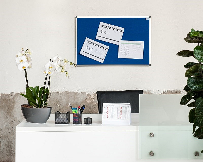Moderní textilní nástěnka AVELI má vysoce odolný povrch proti poškození při práci s napínáčky a špendlíky. Má lehkou konstrukci a elegantní rám z kvalitního eloxovaného hliníku. Nástěnka má moderní plastové uzávěry, které zakryjí upevnění na zeď.