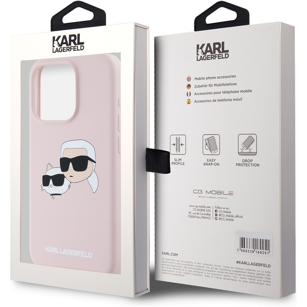 Karl Lagerfeld Liquid Silicone Double Heads Magsafe zadní kryt iPhone 15 Pro Max růžový