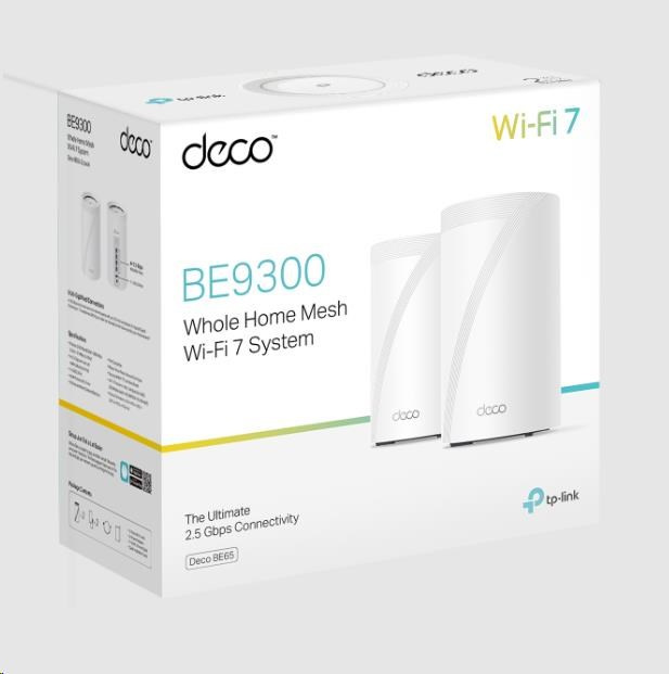TP-Link Deco BE65(2-pack) WiFi7 Mesh(BE9300,2,4GHz/5GHz/6GHz,4x2,5GbELAN/WAN, 1xUSB3.0)