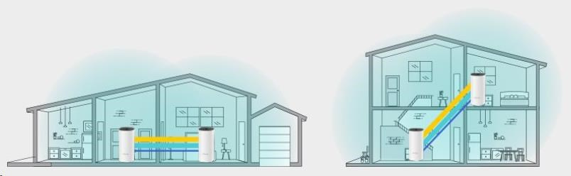 • Díky pokročilé Deco síťové technologii jednotky spolupracují na vytvoření jednotné sítě s jediným názvem sítě. Zařízení se automaticky přepíná mezi jednotkami Deco při vašem pohybu po domě pro dosažení nejvyšší možné rychlosti.