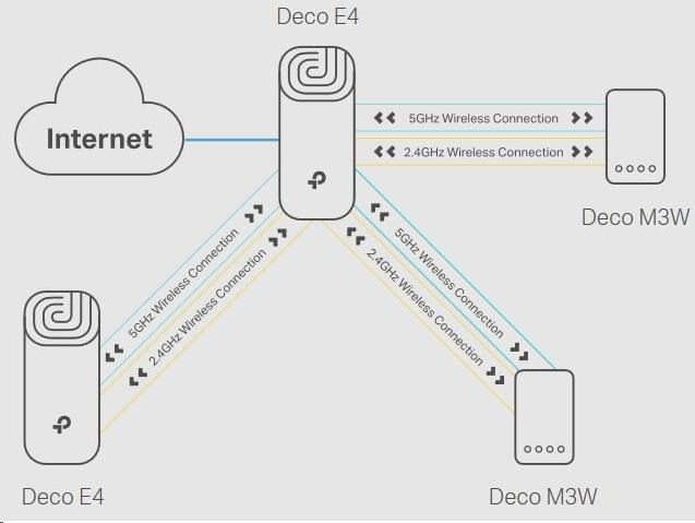 • Deco E4 poskytuje rychlé a stabilní spojení rychlostí až 867 Mb/s a spolupracuje s hlavními poskytovateli internetových služeb (ISP) a modemem.