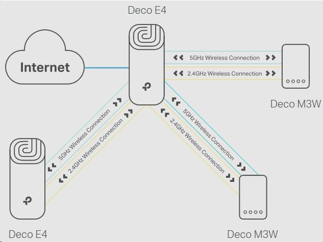 - Deco E4 poskytuje rychlé a stabilní spojení rychlostí až 867 Mb/s a spolupracuje s hlavními poskytovateli internetových služeb (ISP) a modemem.