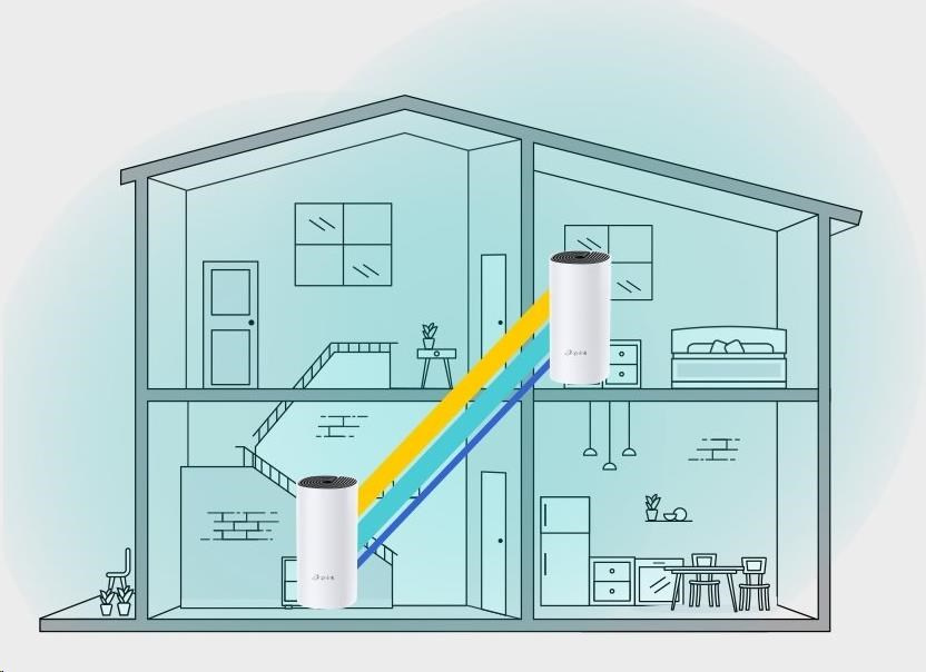 - Díky pokročilé Deco mesh technologii spolupracují jednotky na vytvoření jednotné sítě s jediným názvem. Zařízení se automaticky přepíná mezi jednotkami Deco při vašem pohybu po domě pro dosažení nejvyšší možné rychlosti.