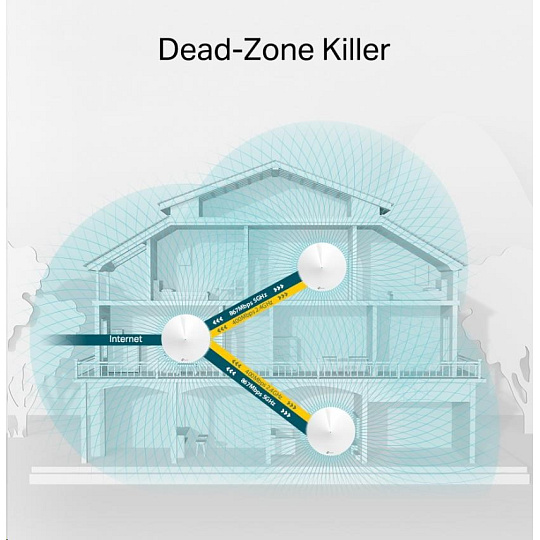 | WiFi Range | 3-5 Bedroom Houses (3-pack) TP-Link Mesh Technology Optional Ethernet backhaul work together to link Deco units to provide seamless coverage 4× Antennas (Internal) Multiple antennas form a signal-boosting array to cover more directions and large areas Beamforming Concentrates wireless signal strength towards clients to expand WiFi range |