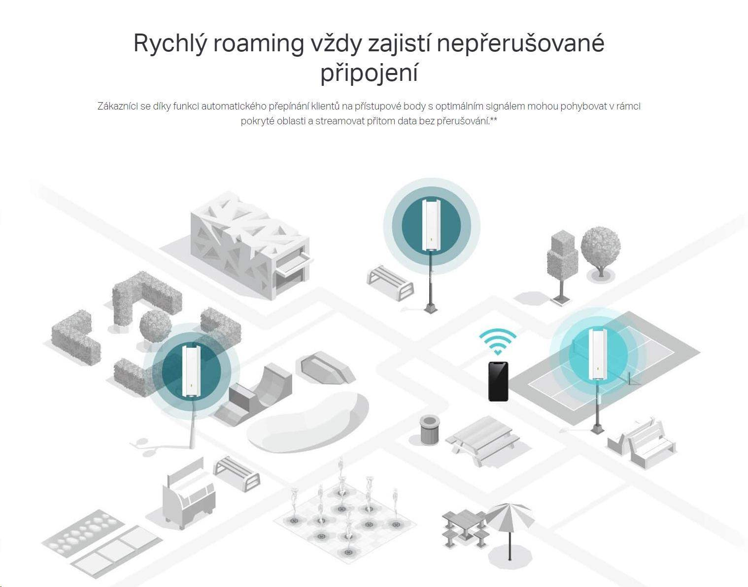- Rychlý roaming vždy zajistí nepřerušované připojení: Uživatelé se mohou spolehnout na snadné přepínání svých zařízení mezi přístupovými body při pohybu po domě nebo například mezi kancelářemi.