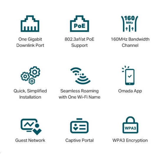 - Centralizovaná cloudová správa: Integrace s platformou Omada SDN umožňuje cloudový přístup a vzdálenou správu.