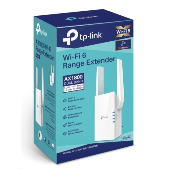 TP-Link RE605X OneMesh WiFi6 Extender/Repeater (AX1800,2,4GHz/5GHz,1xGbELAN)