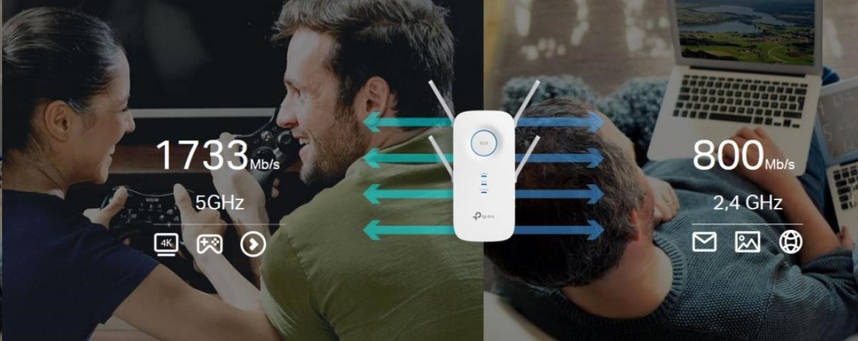 TP-Link RE650 WiFi5 Extender/Repeater (AC2600,2,4GHz/5GHz,1xGbELAN)