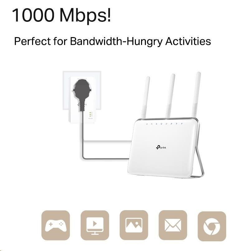 - HomePlug AV2 standardní, vysokorychlostní přenos dat rychlostí až 1000Mb/s, podporuje všechny vaše online potřeby