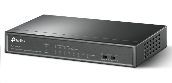 TP-Link switch TL-SF1008LP (8x100Mb/s, 4xPoE, 41W, fanless)