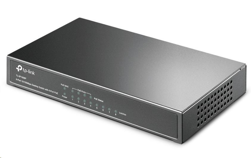 TP-Link switch TL-SF1008P (8x100Mb/s, 4xPoE+, 66W, fanless)