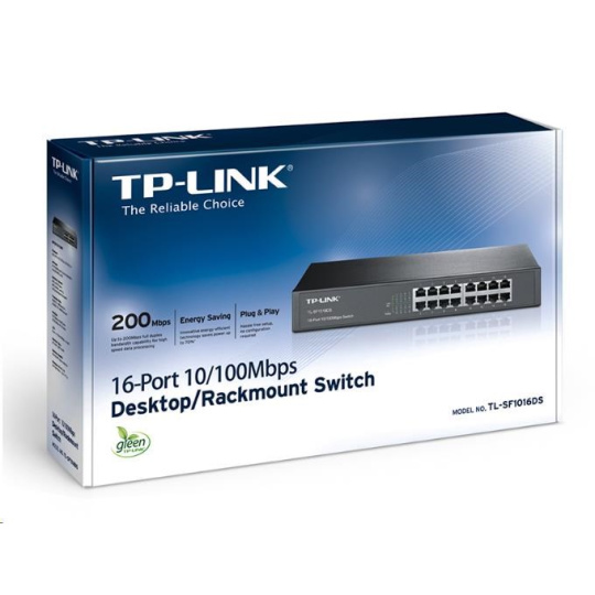 Switch TL-SF1016DS Fast Ethernet představuje výkonnou, cenově dostupnou, snadno použitelnou, bezproblémovou a standardní možnost upgradování staré sítě na síť s rychlostí 1 000 Mbit/s. Všech 16 portů podporuje funkci Auto MDI/MDIX, díky které se nemusíte starat o příslušný typ kabelu – stačí zapojit a používat. Navíc s inovativní technologií úspory energie dokáže zařízení TL-SF1016DS snížit spotřebu energie až o 25 %; 80 % obalového materiálu lze recyklovat. To vše z tohoto zařízení činí ekologické řešení pro vaši firemní síť.