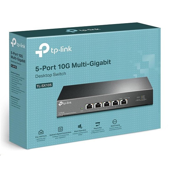 Switch TL-SX105, který je vlajkovým produktem segmentu 10G, je 5portový stolní switch 10G s kapacitou přepínání až 100 Gbit/s. Funkce automatického vyjednávání rychlostí 5rychlostního připojení (100 Mbit/s / 1G / 2.5G / 5G / 10G) monitoruje rychlost připojení a inteligentně ji přizpůsobuje pro kompatibilitu a optimální výkon všech vašich zařízení, včetně úložišť NAS 10G, serverů 10G, pracovních stanic, herních počítačů, přístupových bodů 2.5G / 5G / 10G WiFi 6, 8K videí, stolních počítačů a dalších aplikací.