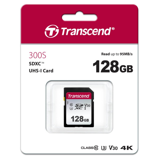 TRANSCEND SDXC karta 128GB 300S, UHS-I U3 V30 (R:100W:25 MB/s)