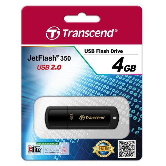 TRANSCEND Flash Disk 4GB JetFlash®350, USB 2.0 (R:13/W:4 MB/s) černá
