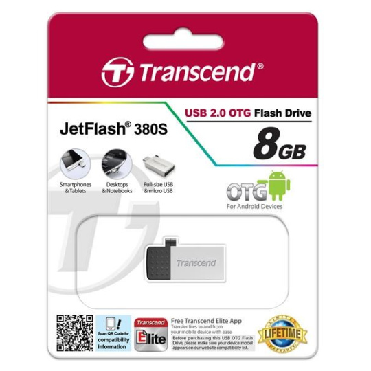 TRANSCEND Flash Disk 8GB JetFlash®380S, USB 2.0/micro USB (R:20/W:5 MB/s) stříbrná