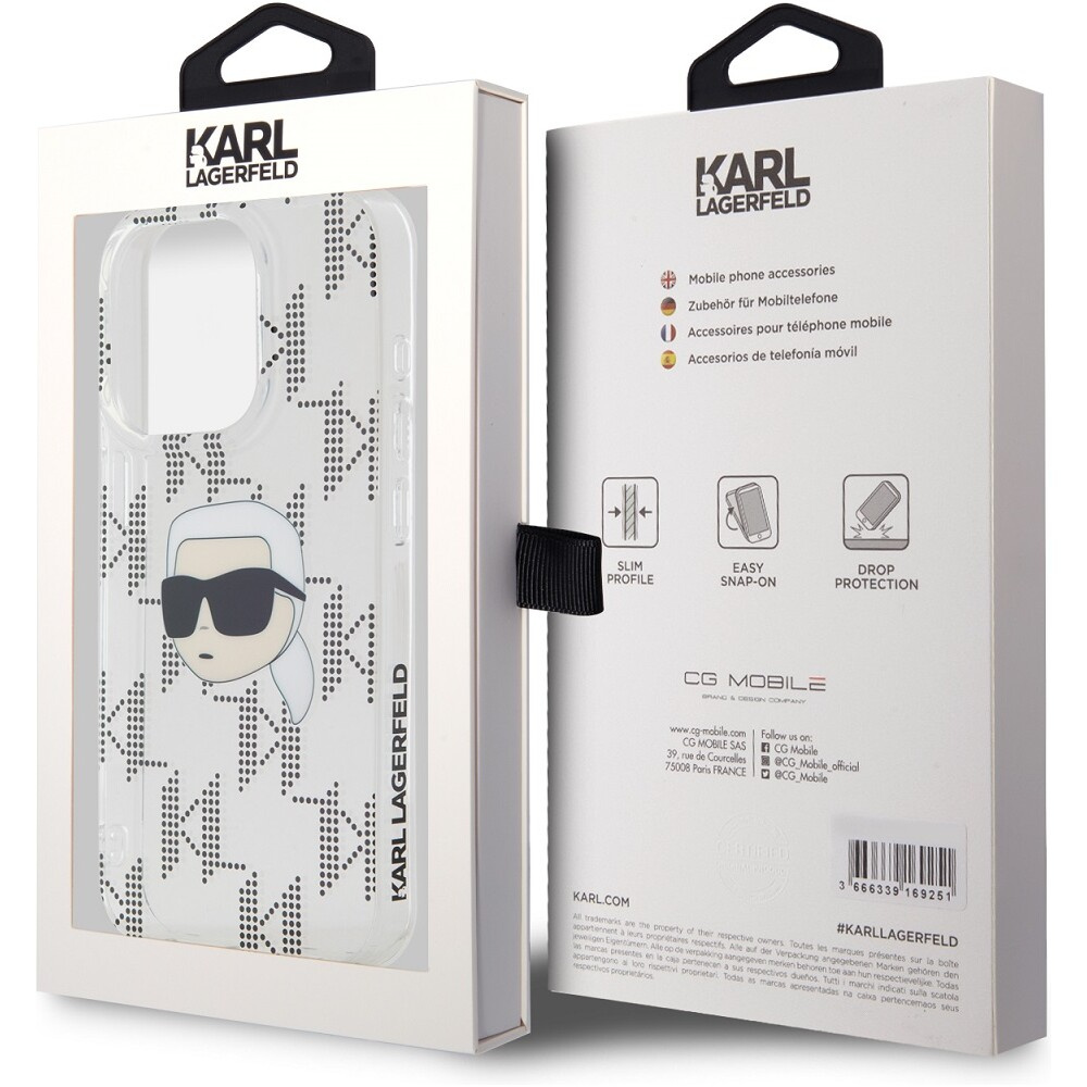 Karl Lagerfeld IML Electroplated Karl Head zadní kryt iPhone 15 Pro Max čirý