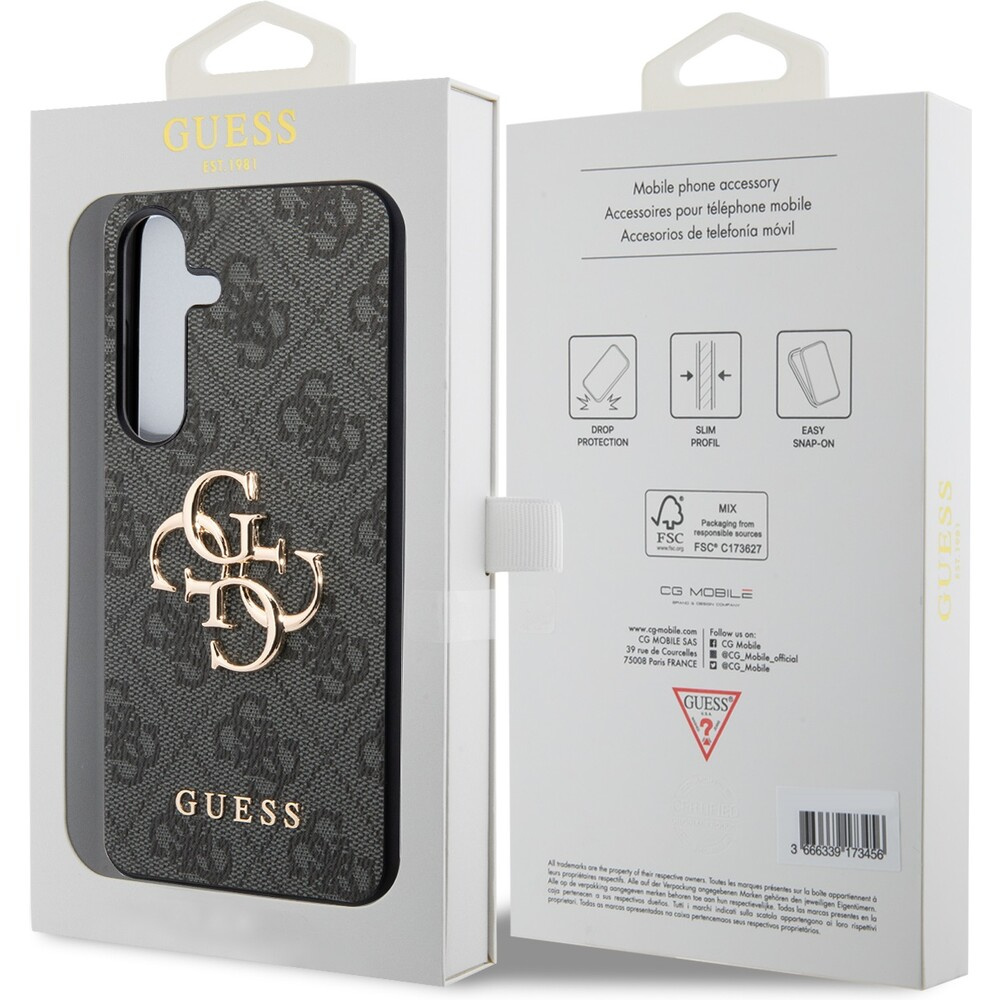 Guess PU 4G Metal Logo Zadní kryt Samsung Galaxy S24 šedý