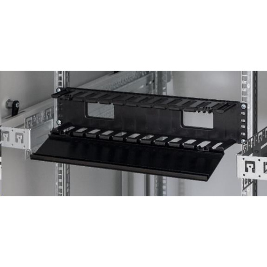 19" vyvazovací panel 2U plastový, RAL 9005.