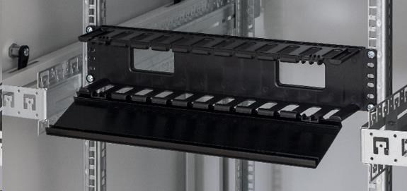 19" vyvazovací panel 2U plastový, RAL 9005.