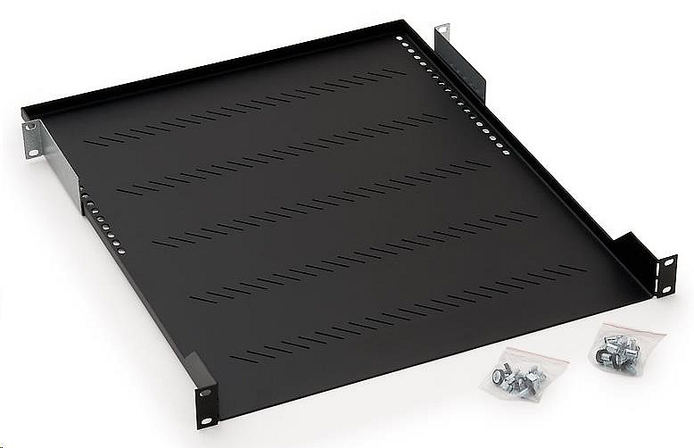 Polička s perforací 1U/750mm RAL 9005 černá V porovnání se standardní policí má tento typ nižší nosnost, ale v rozvaděči nezabírá 1U. Díky své konstrukci tak umožňuje plné využití instalačních pozic v rozvaděči. Takové řešení je výhodou zejména u stísněných instalací nebo v případě nástěnných rozvaděčů. Perforované tělo police zajišťuje proudění vzduchu. Police hluboké 150 mm a 250 mm se instalují pouze na přední vertikální lišty. Zadní držáky, které jsou součástí dodávky police od hloubky 350 mm, zvyšují nosnost police po připevnění na druhý pár vertikálních lišt. Příbal: Montážní sada Nosnosti poliček: 150mm - 15 kg 250mm - 20 kg 350mm - 40 kg 450mm - 40 kg 550mm - 40 kg 650mm - 40 kg 750mm - 40 kg.