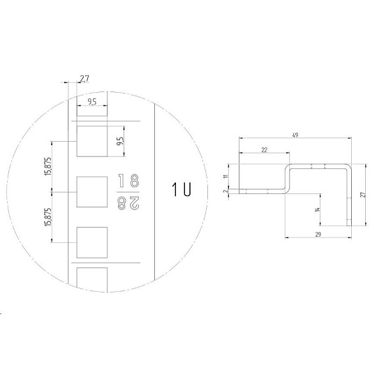 TRITON Vertikální lišta 18U, cena za 1ks